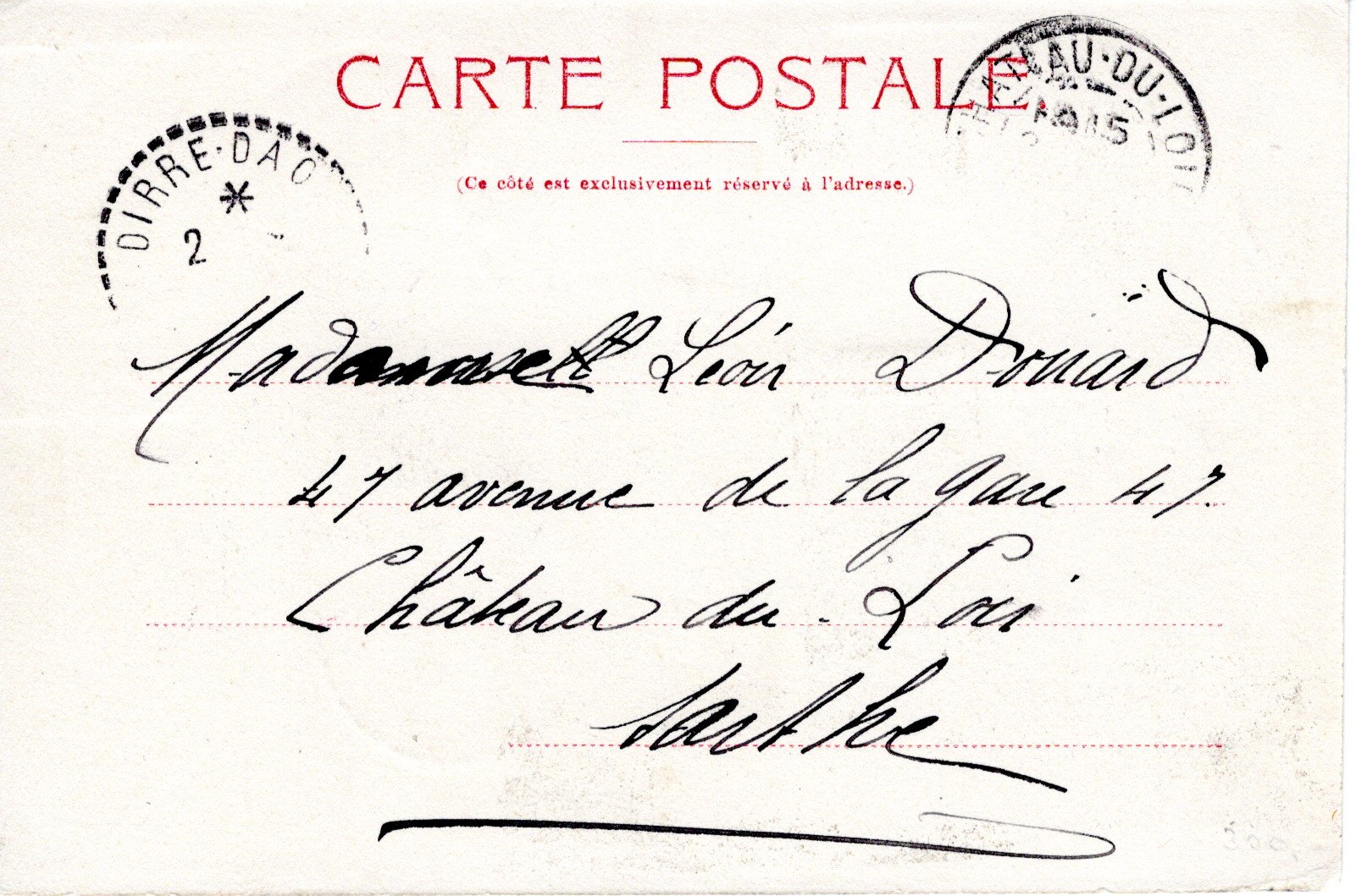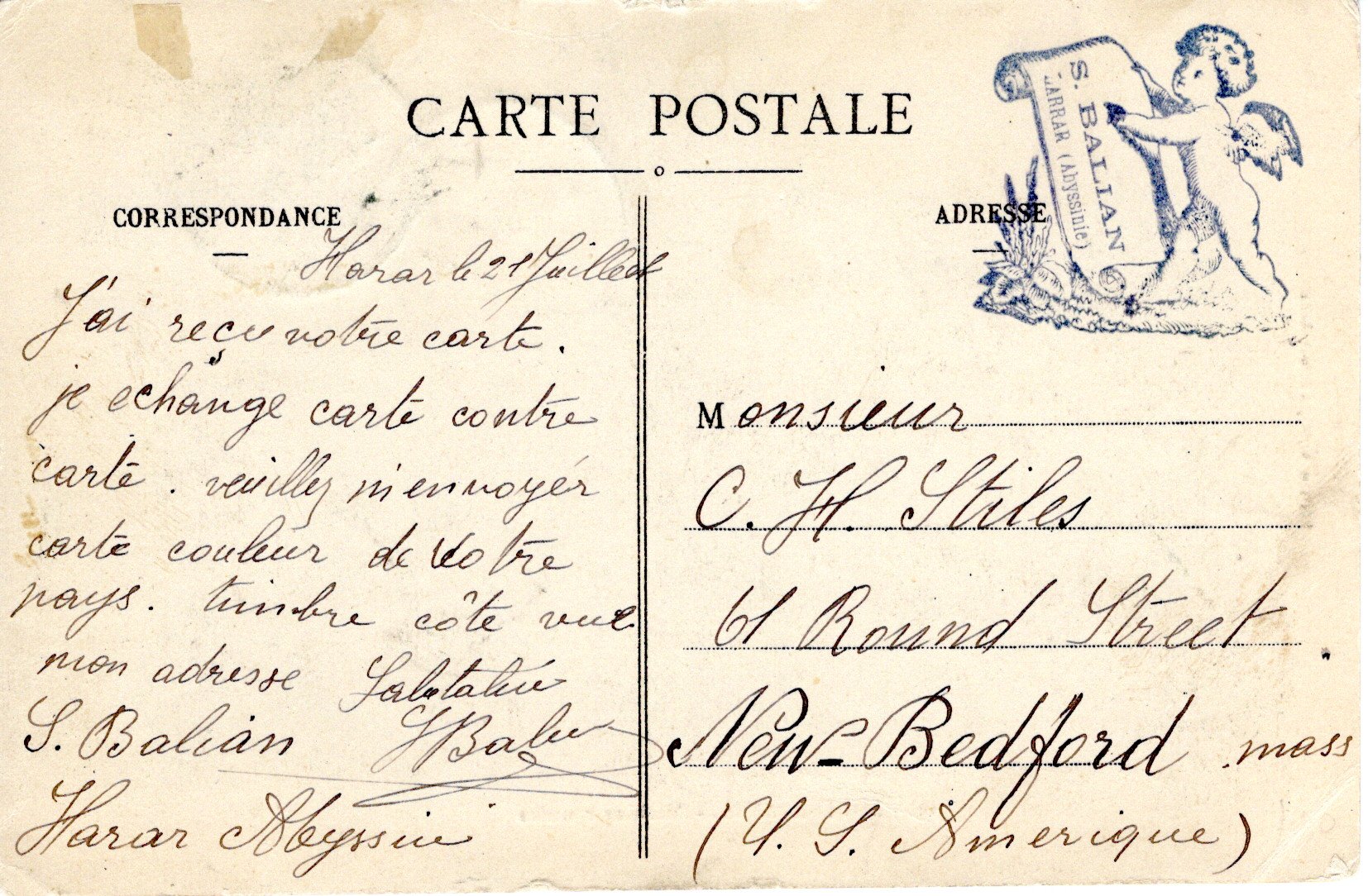 External postcard sent from Dire Daoua to