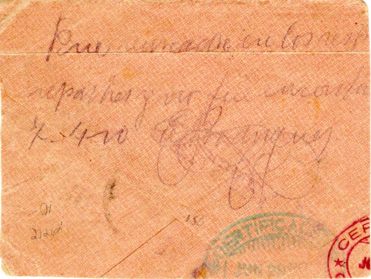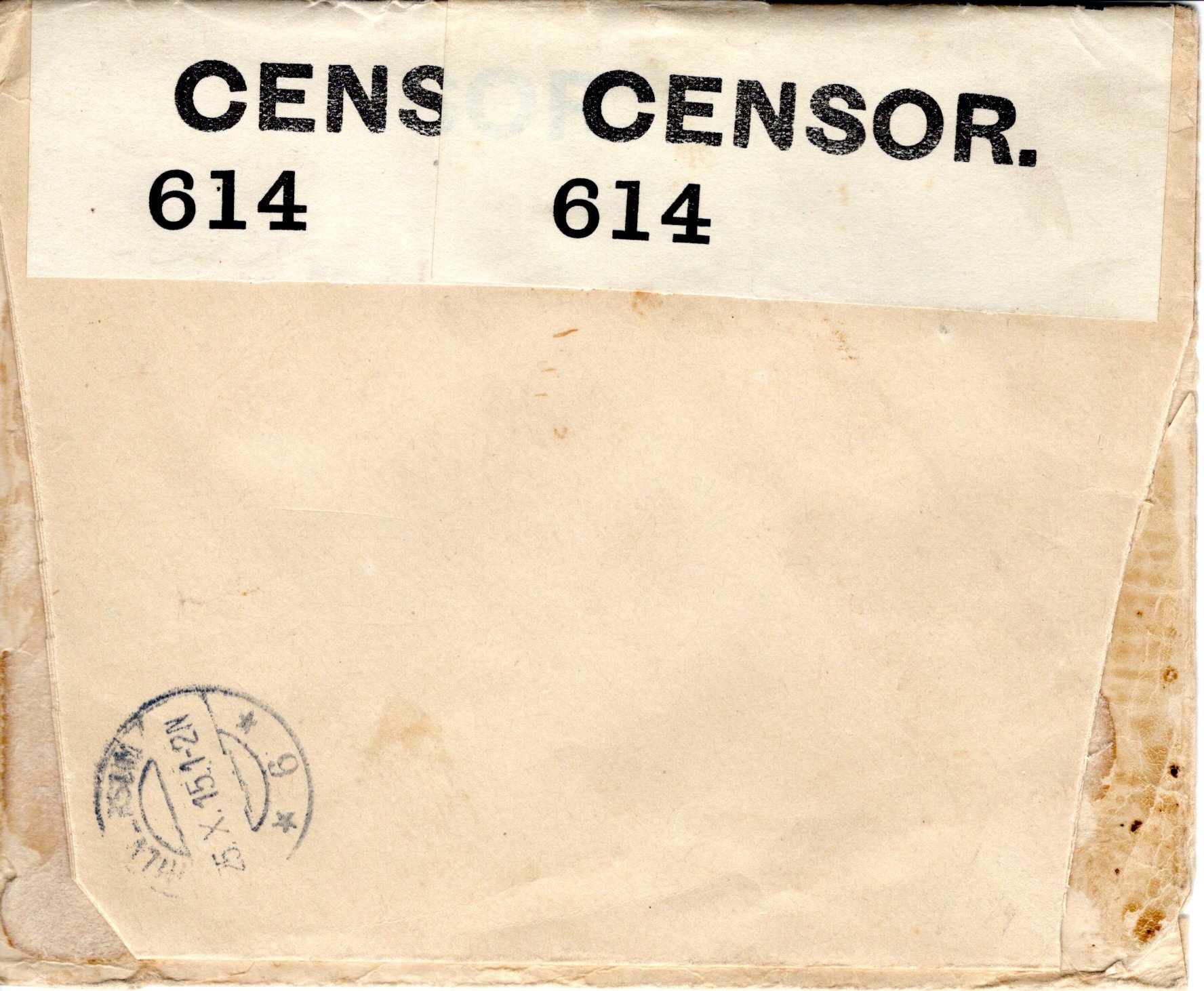 External letter, registered and censored, sent from