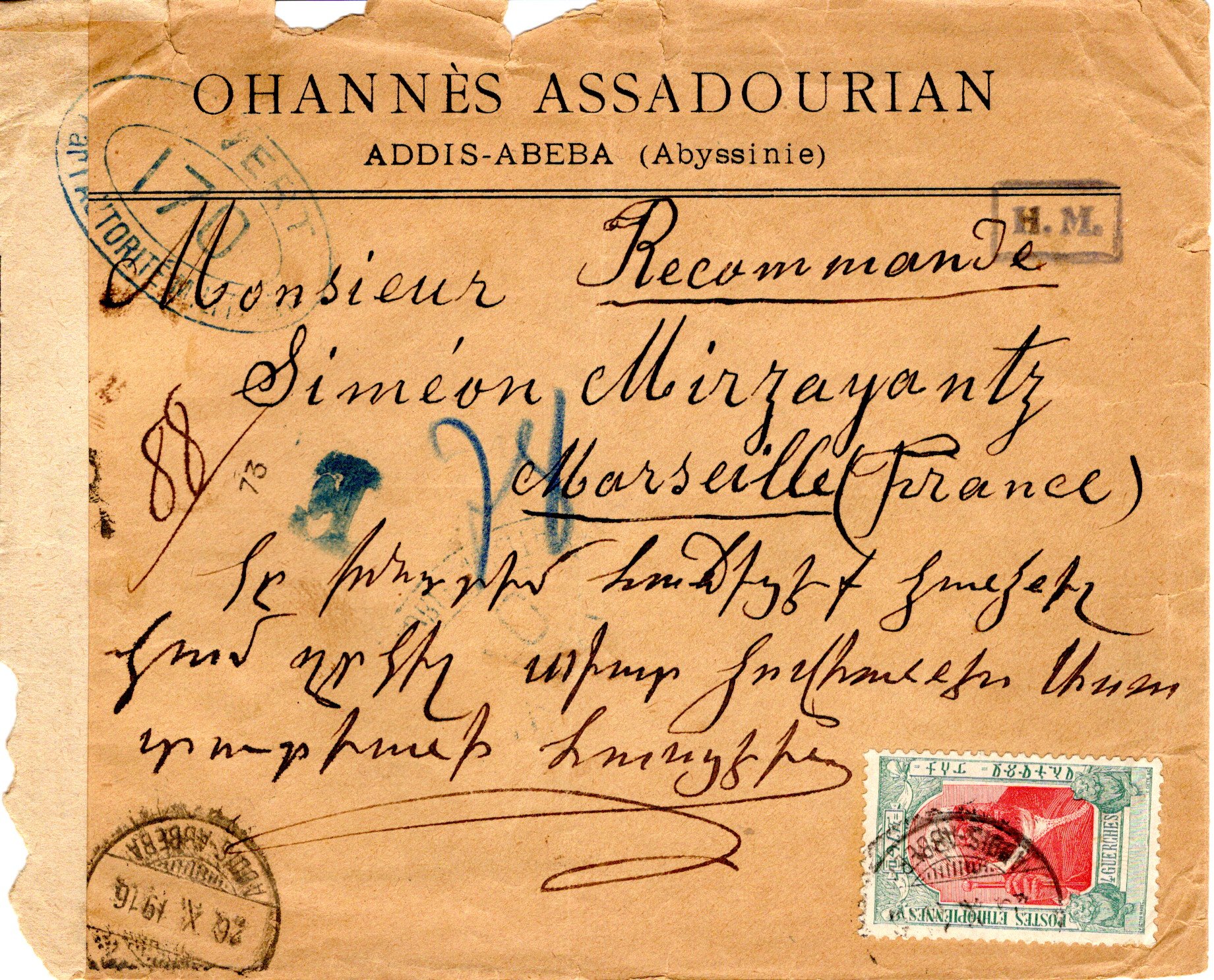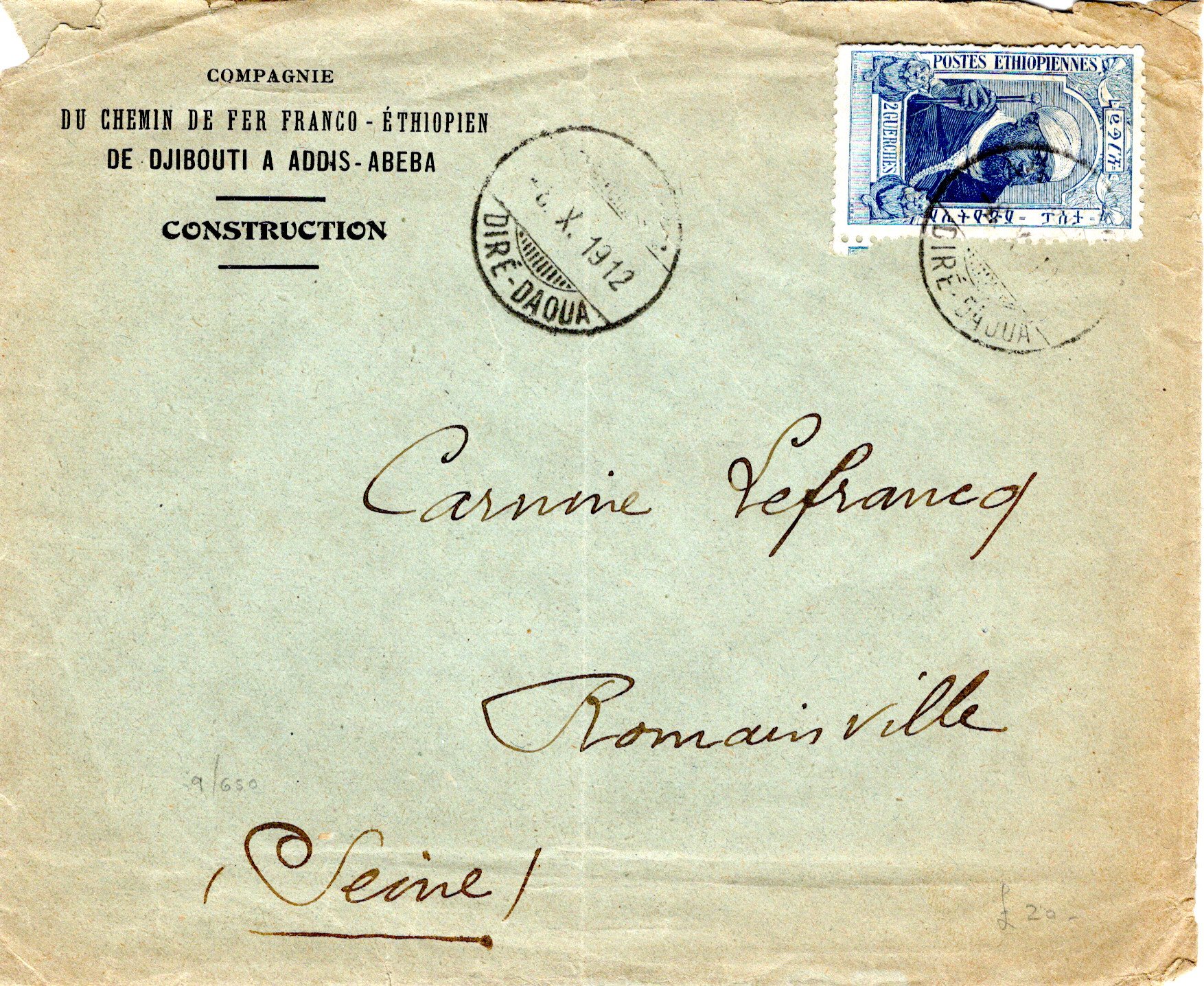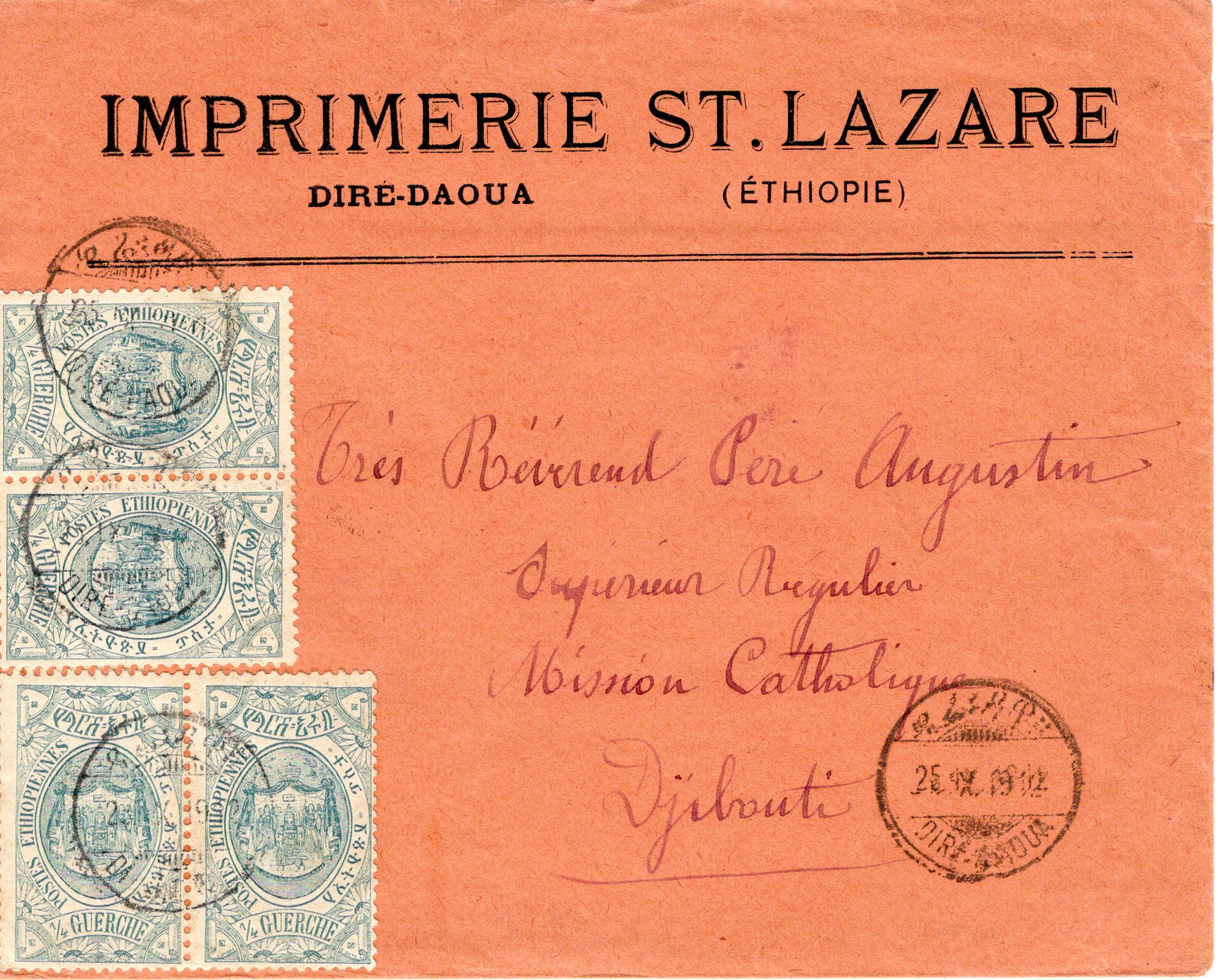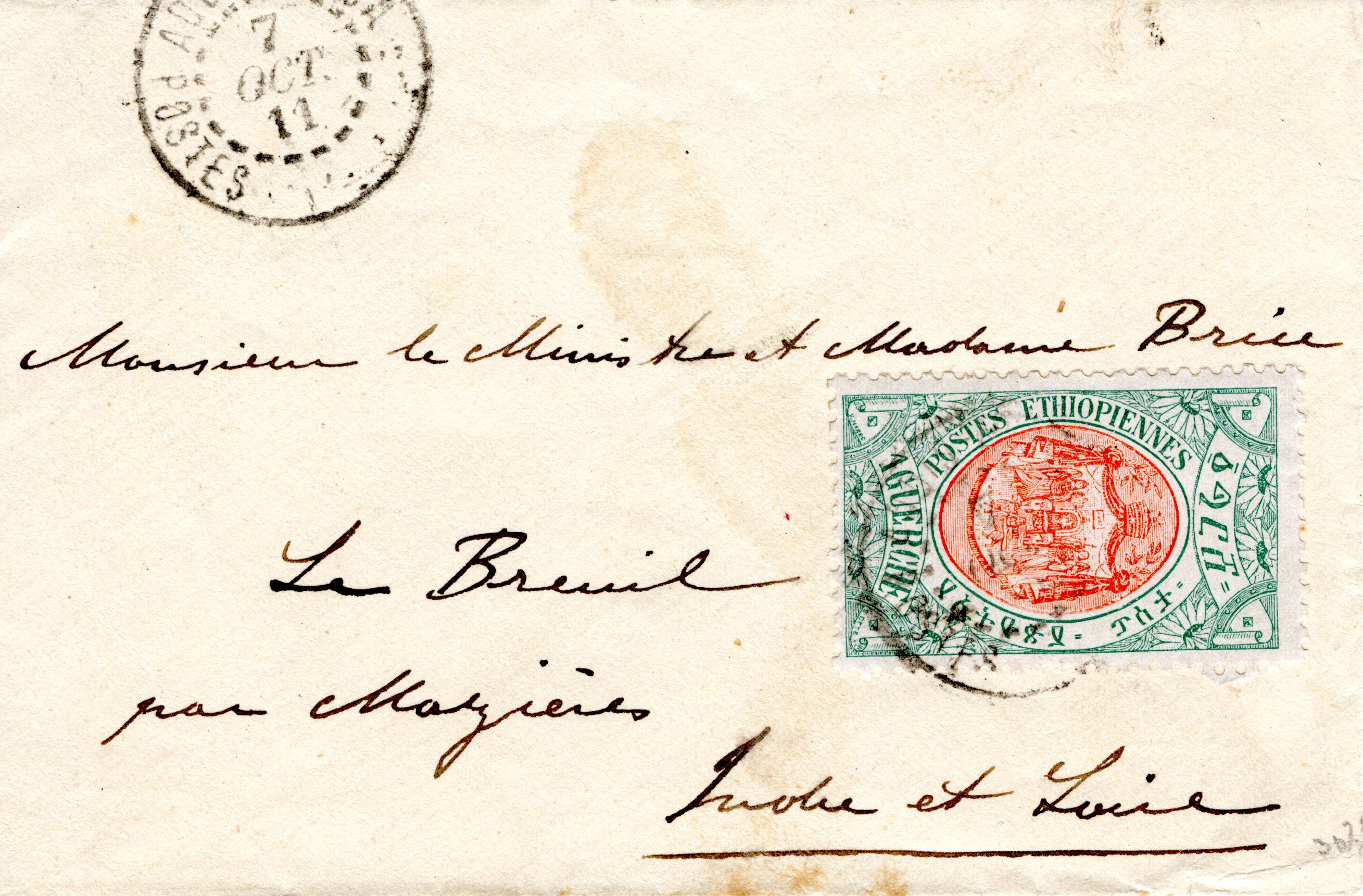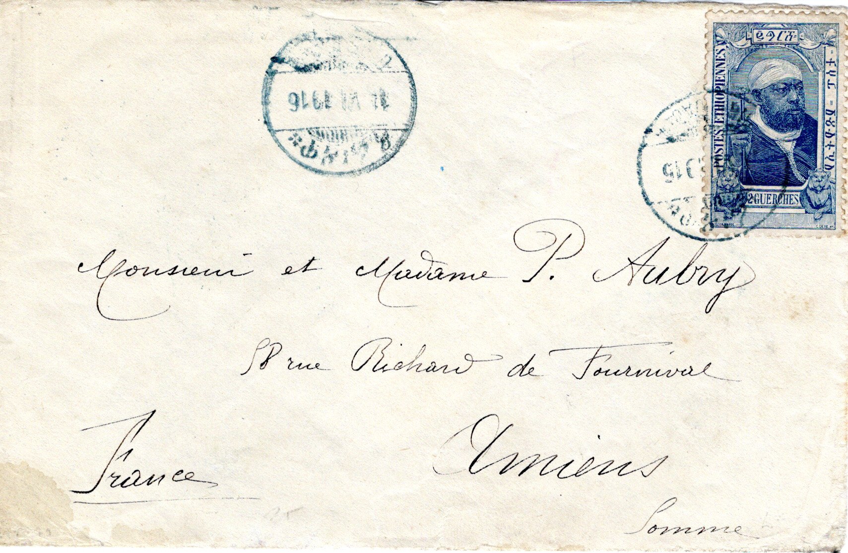 External letter sent from Dire-Daoua to Amiens, France.