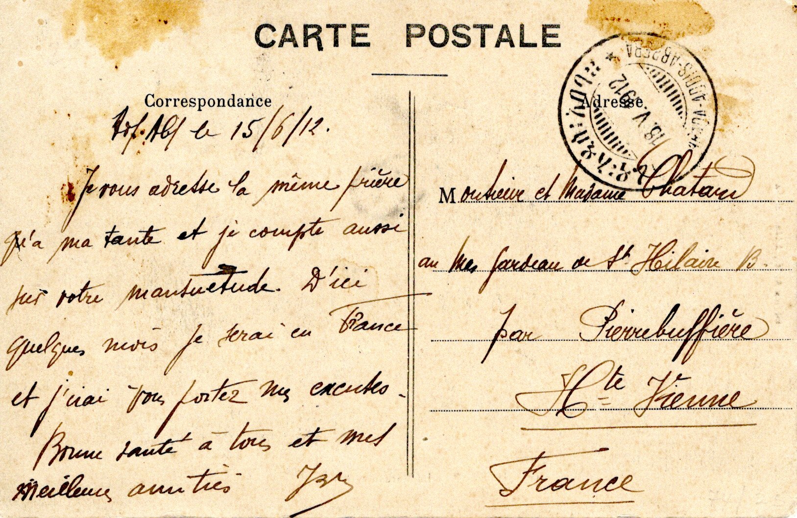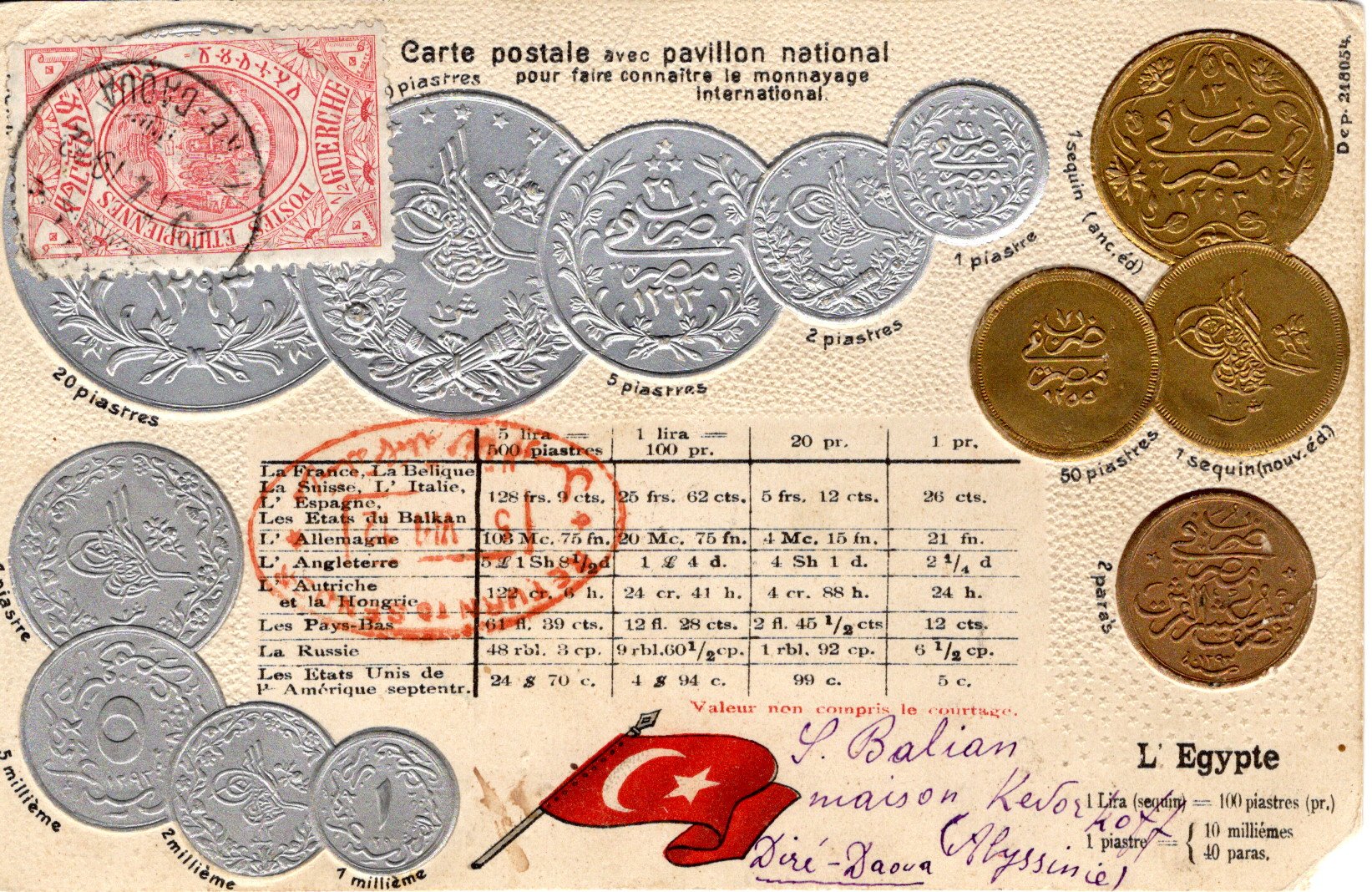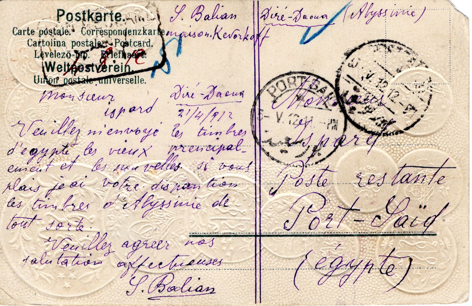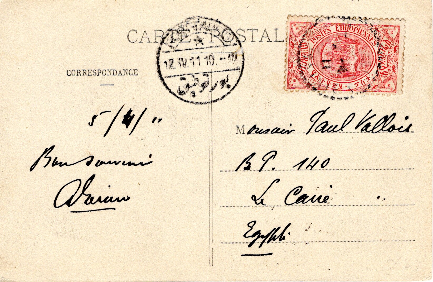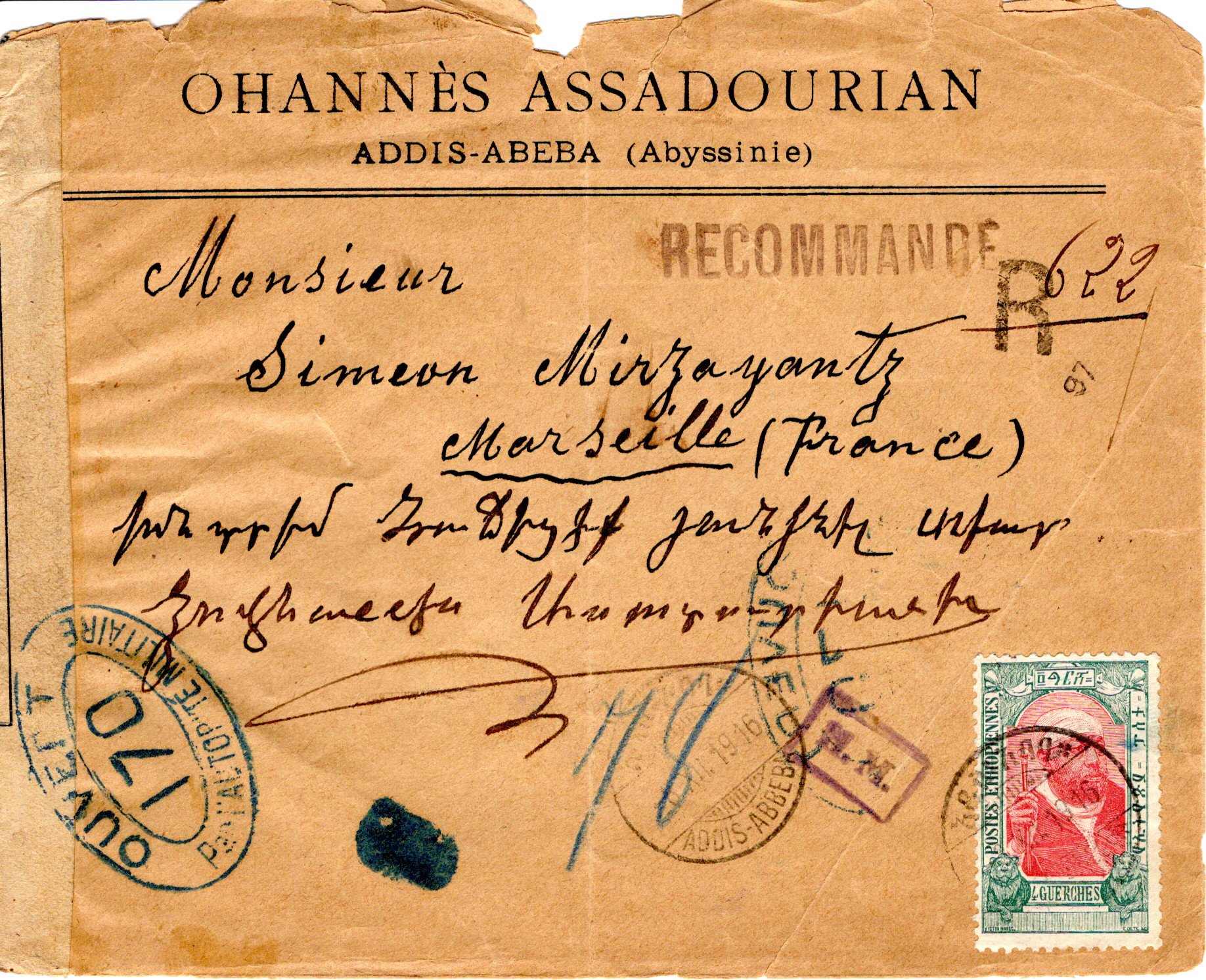 External letter sent from Dire-Daoua to Amiens, France.