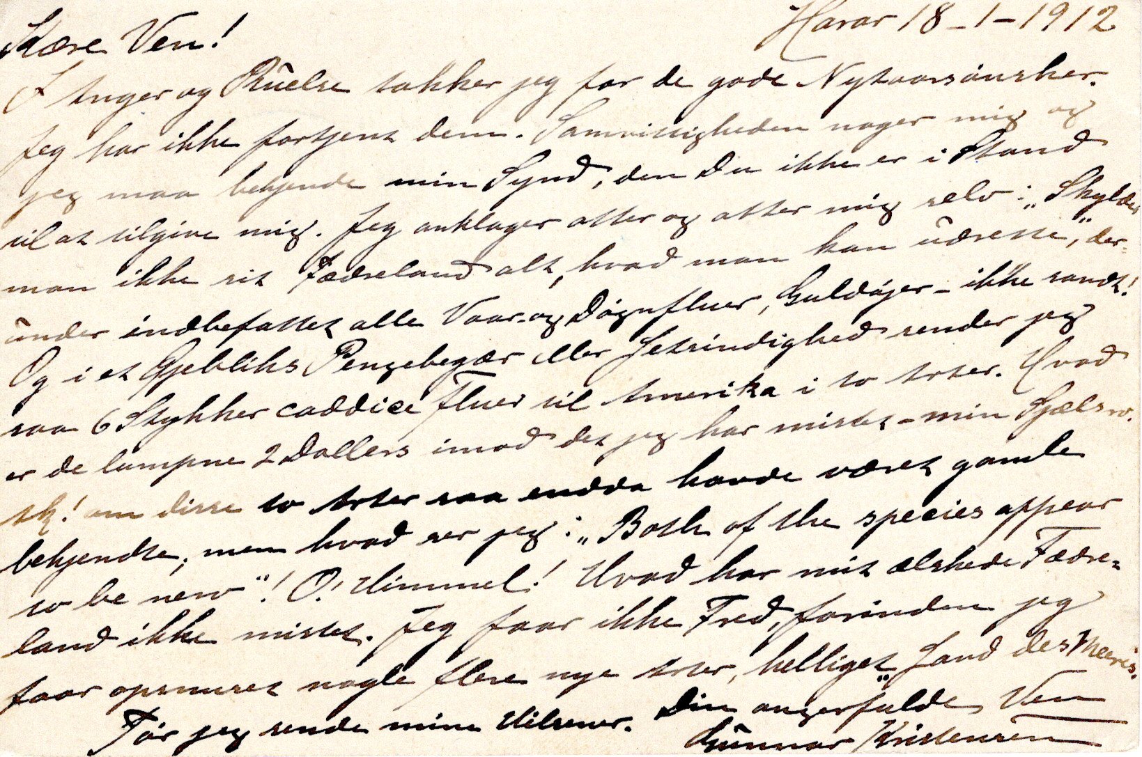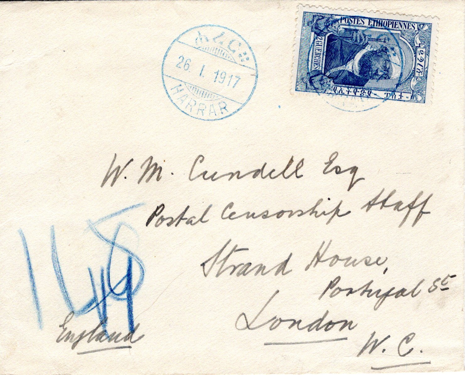 External letter sent from Harrar to London, England.