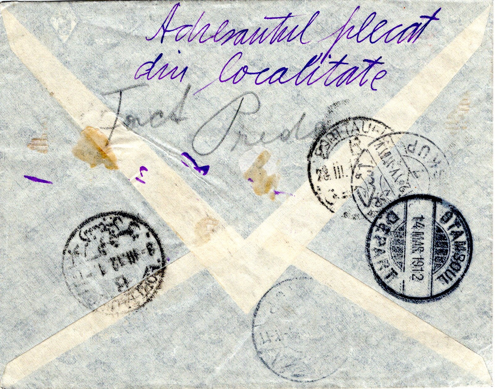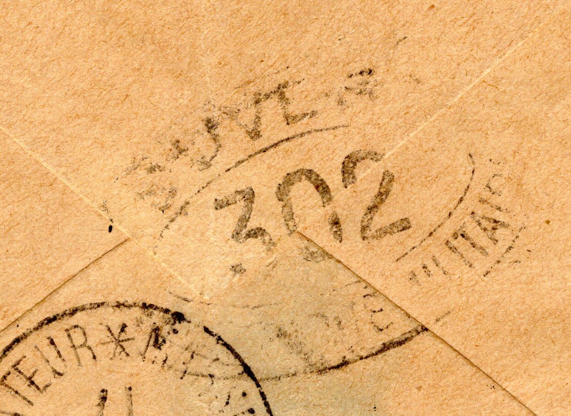 Militaire 302 handstamp in black, and Ouvert Par
