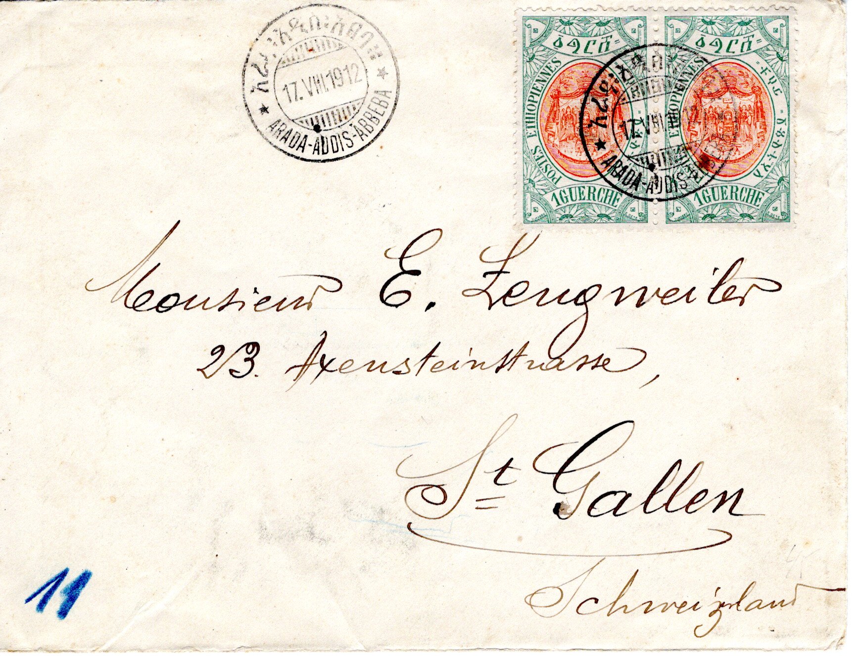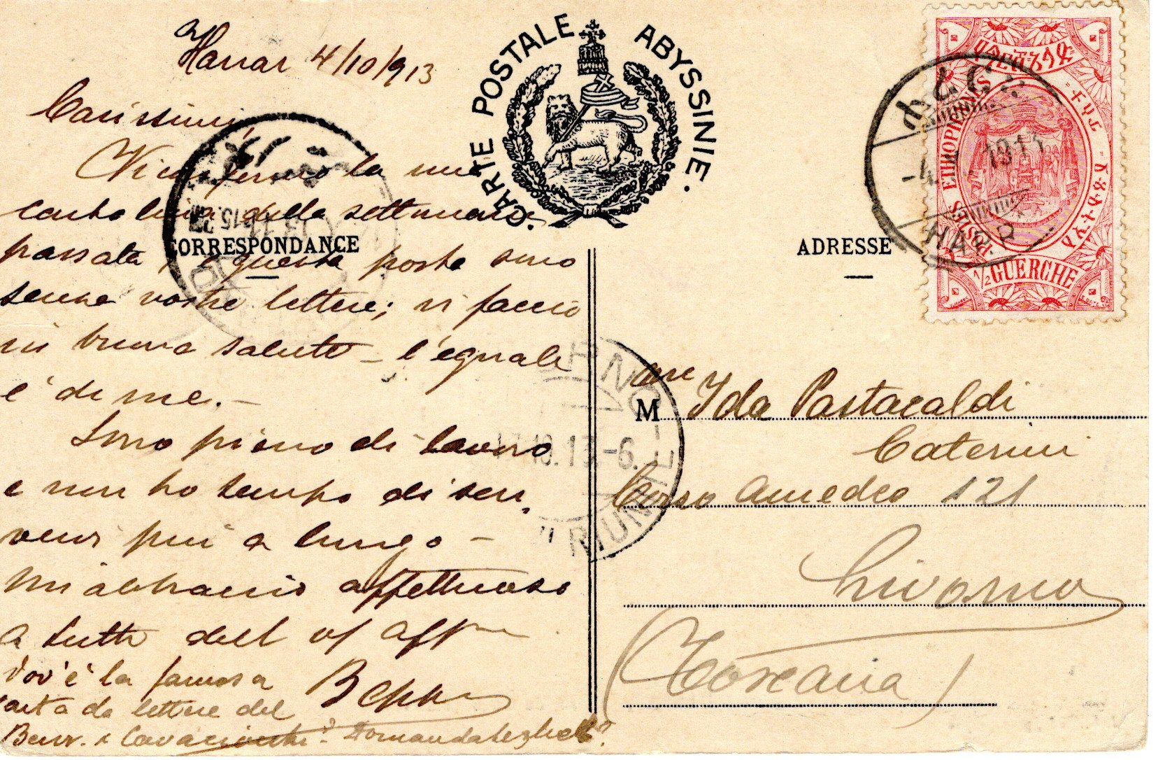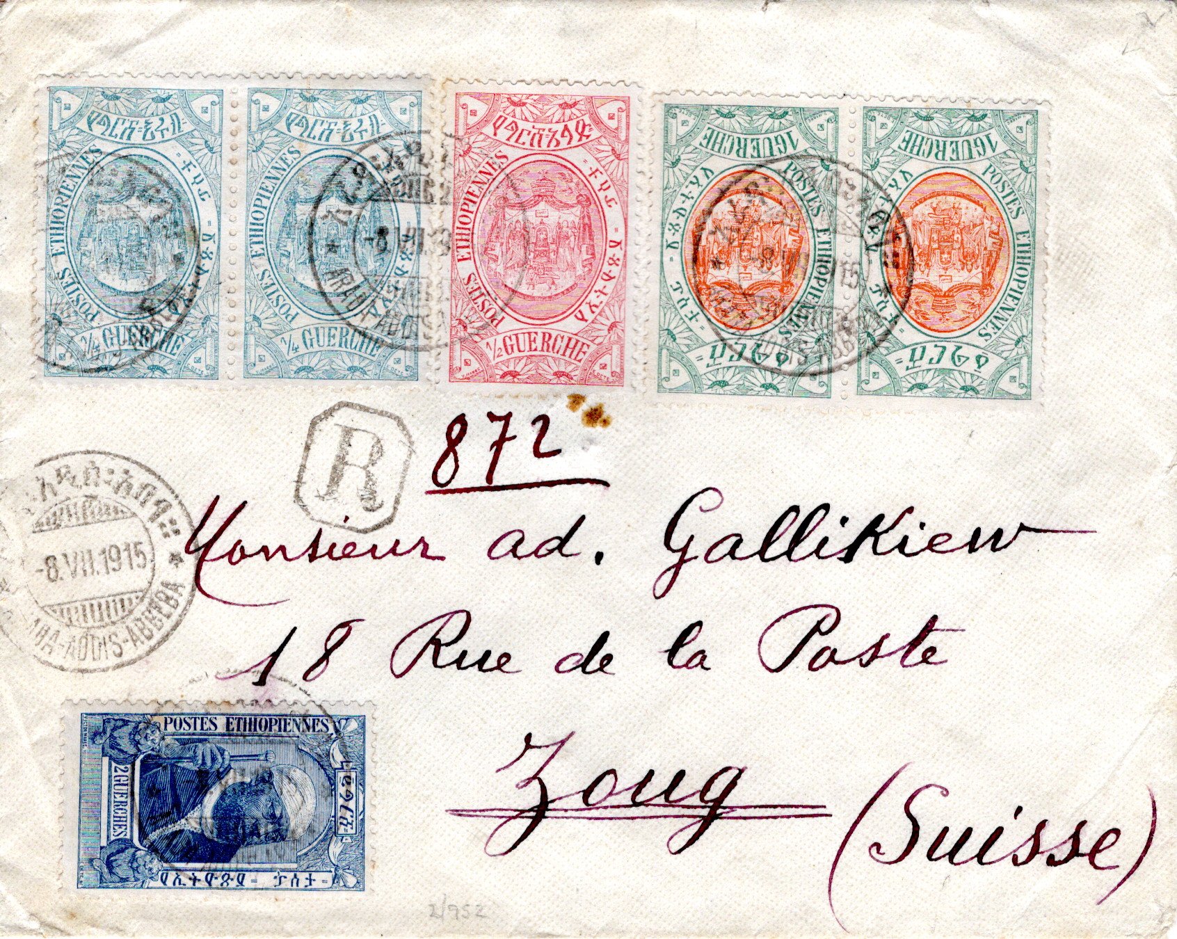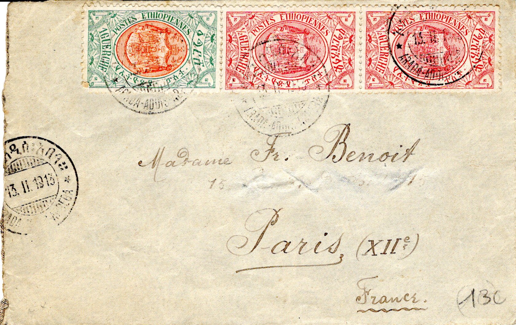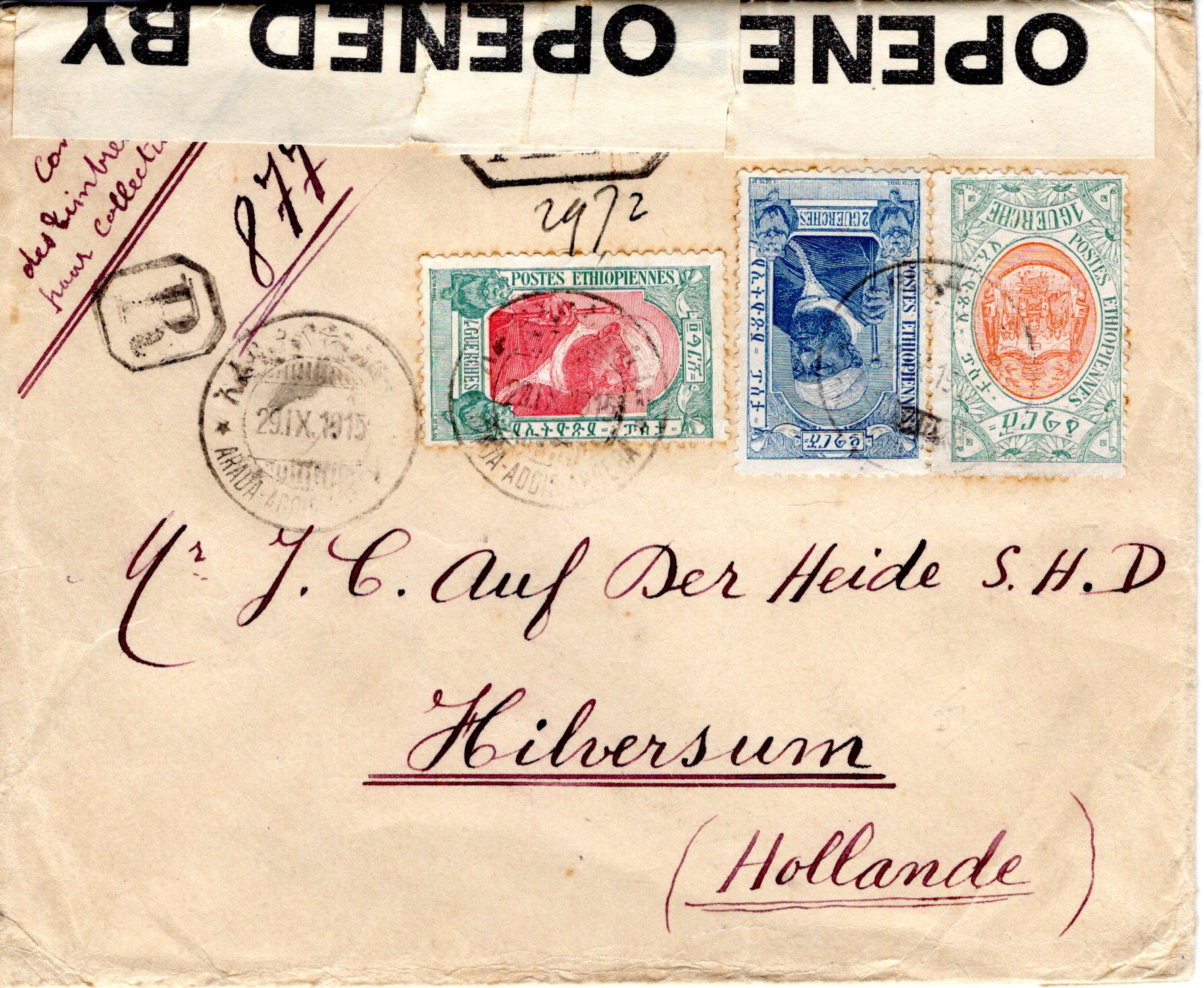 29 September 1915 Arada Addis Ababa postmark. 25 October