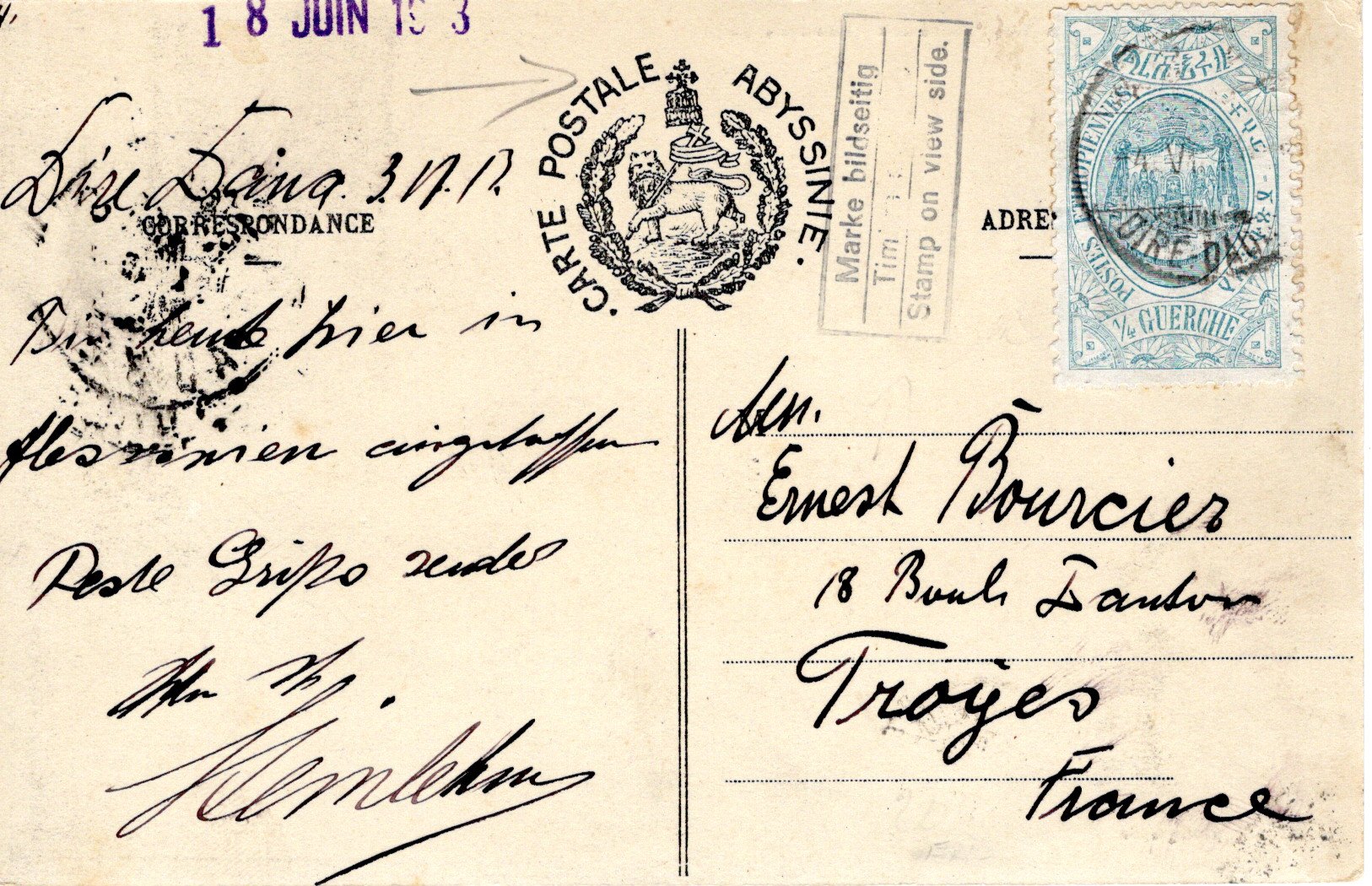France. 4 May 1910 Dire Daoua cancel. 20 May 1910