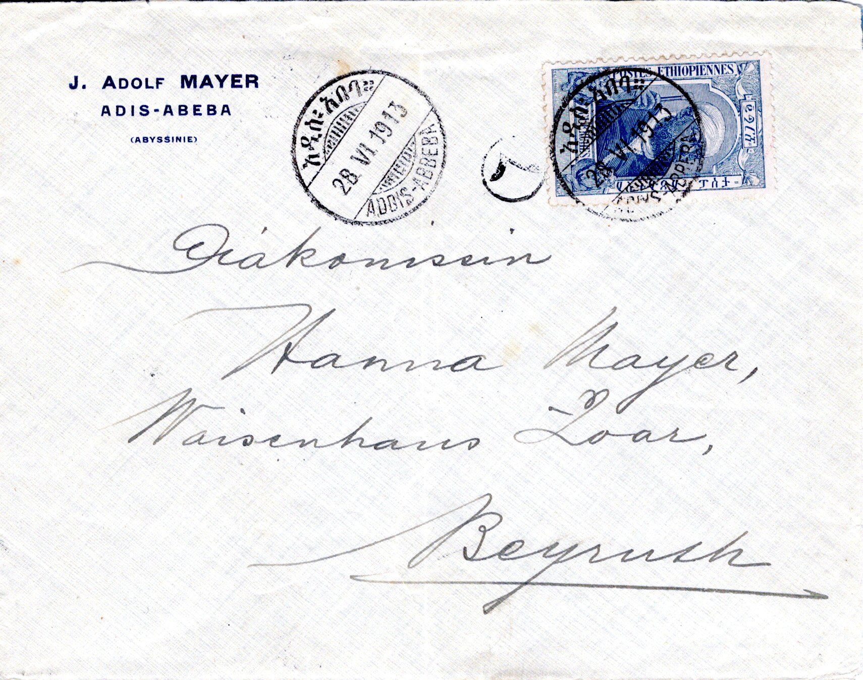 External letter sent from Addis Ababa to Berlin-Südende,