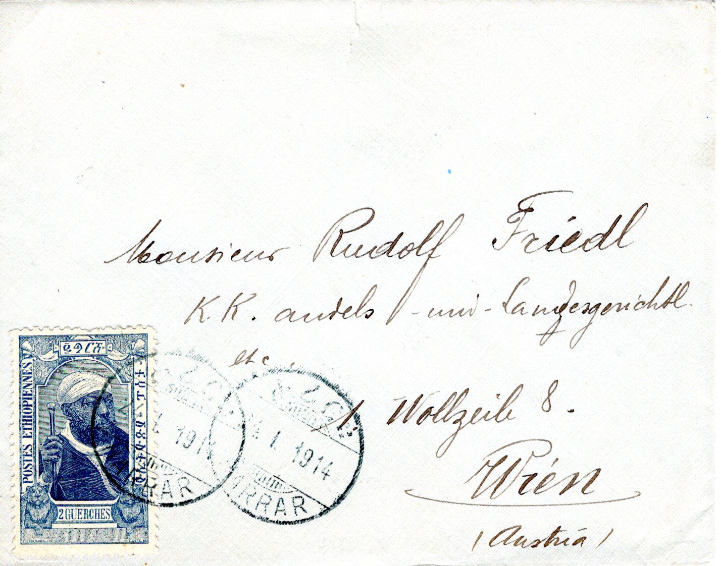 6 August 1909 Addis Ababa cancel. 18 August 1909