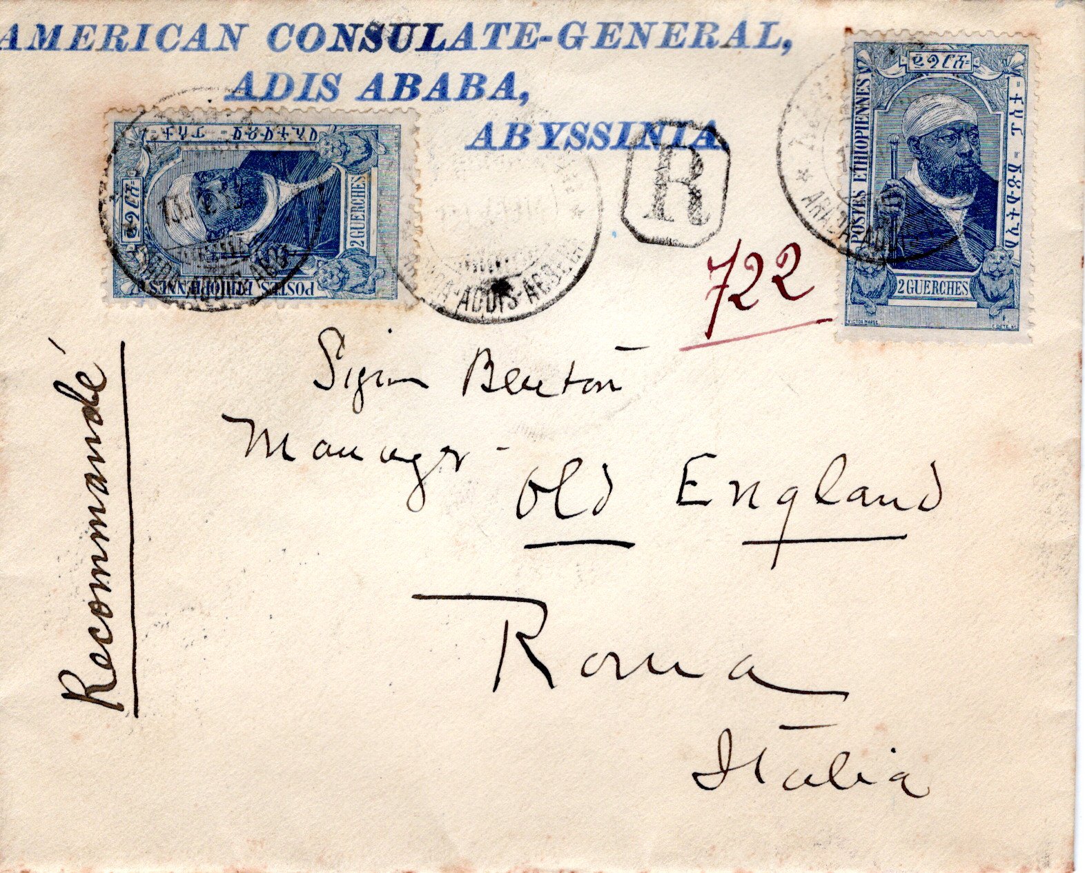 External registered letter from Addis Ababa to Queen