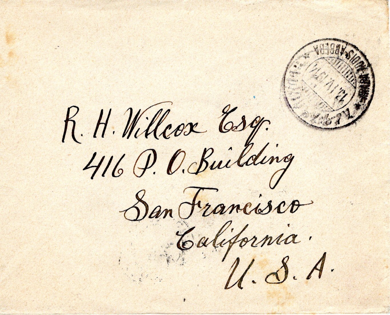 External letter sent from Addis Ababa to S. Francisco,