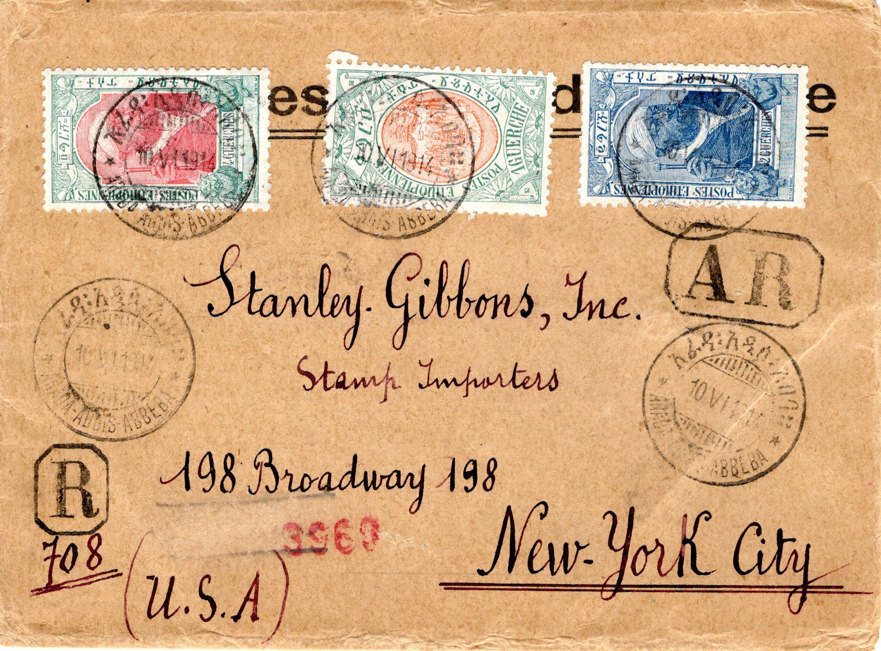 External registered letter sent from Addis Ababa to