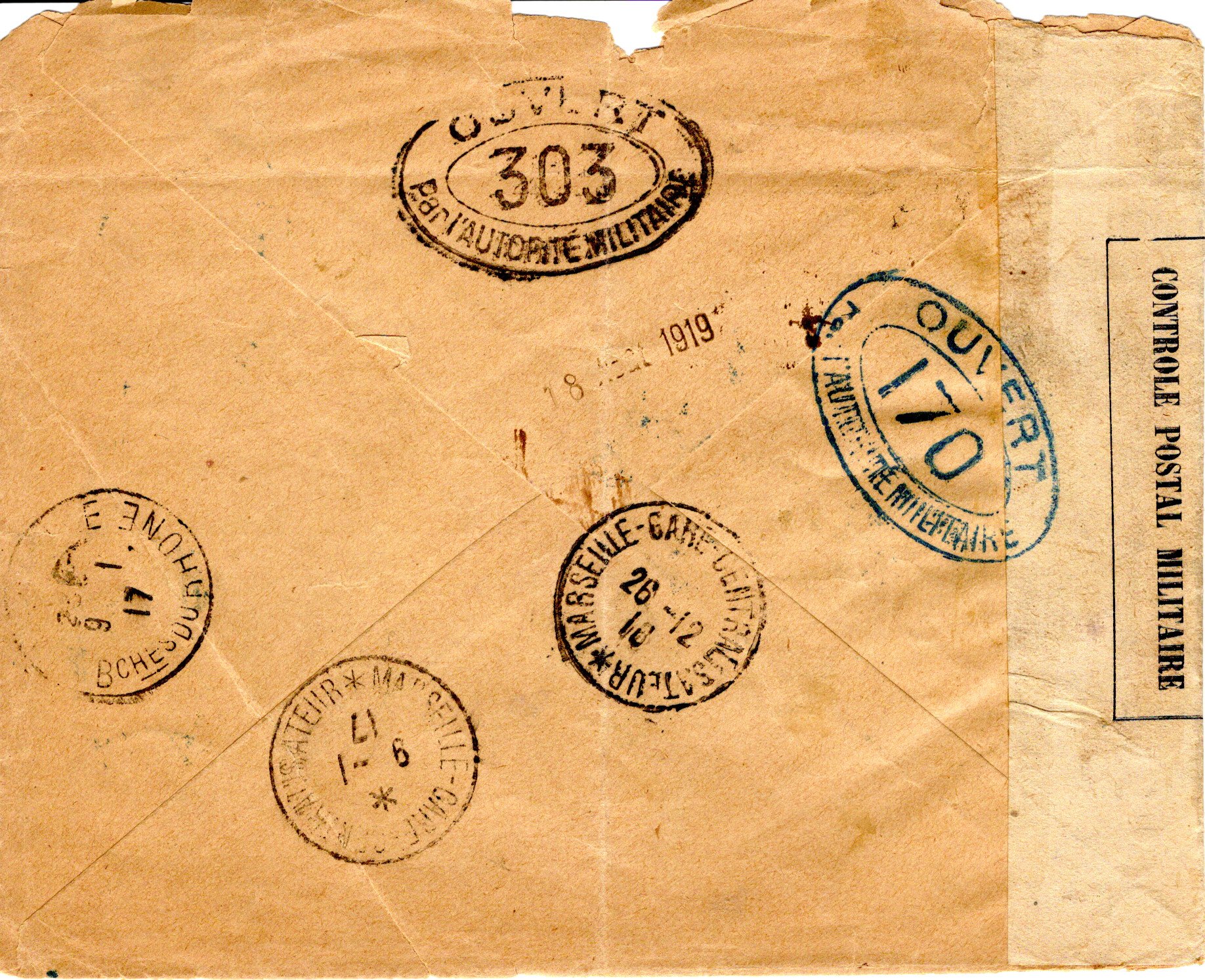 l’Autorité Militaire 170 handstamps in blue. 18 November