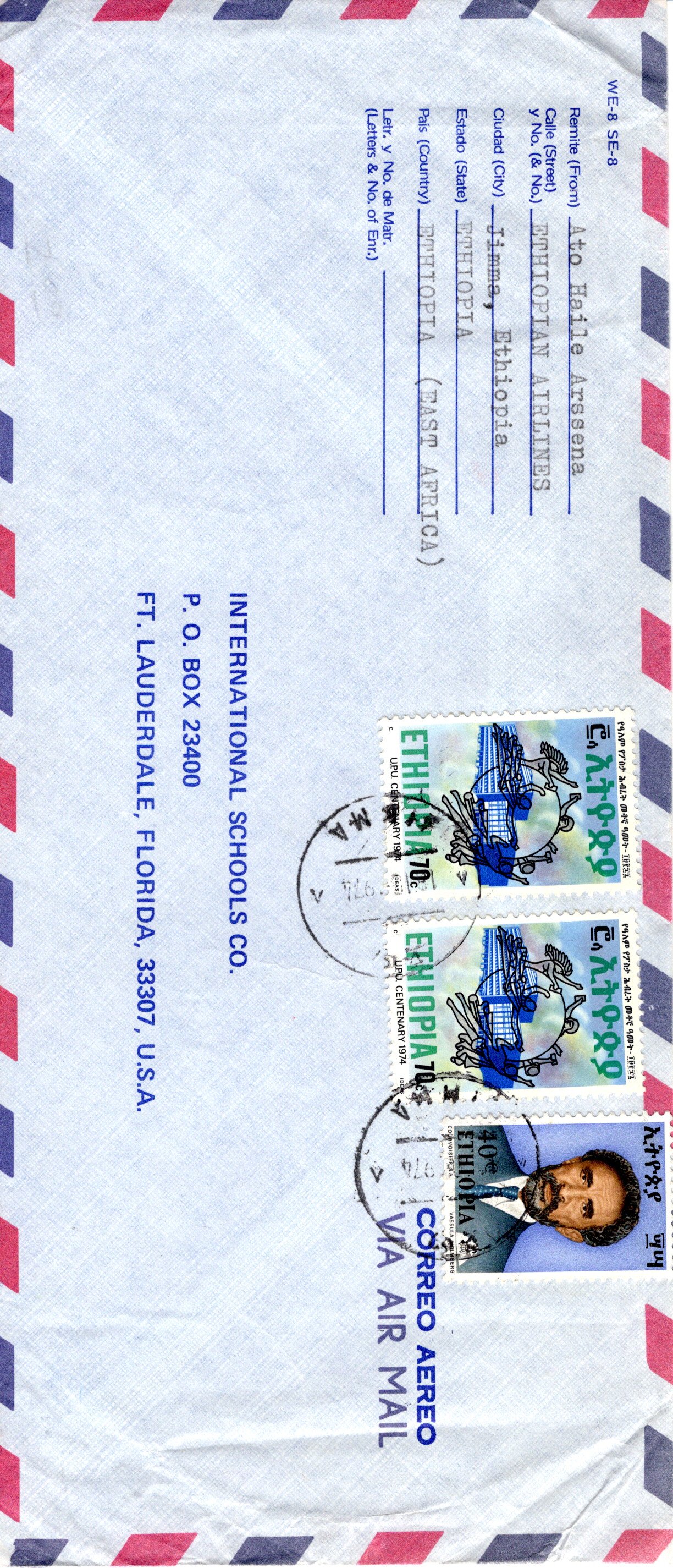 External air mail letter sent from Jimma to Ft. Lauderdale, Florida,